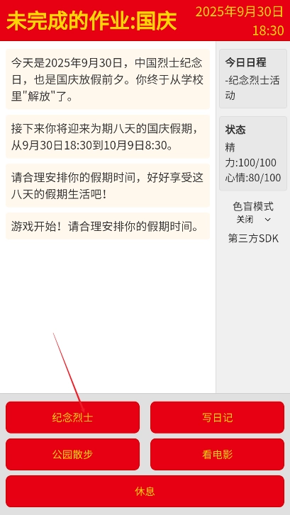 未完成的作业国庆游戏特色